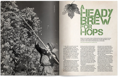 The highlights of designing this issue would have to be the cover and the feature on hop growing in the Motueka and Mapua regions.